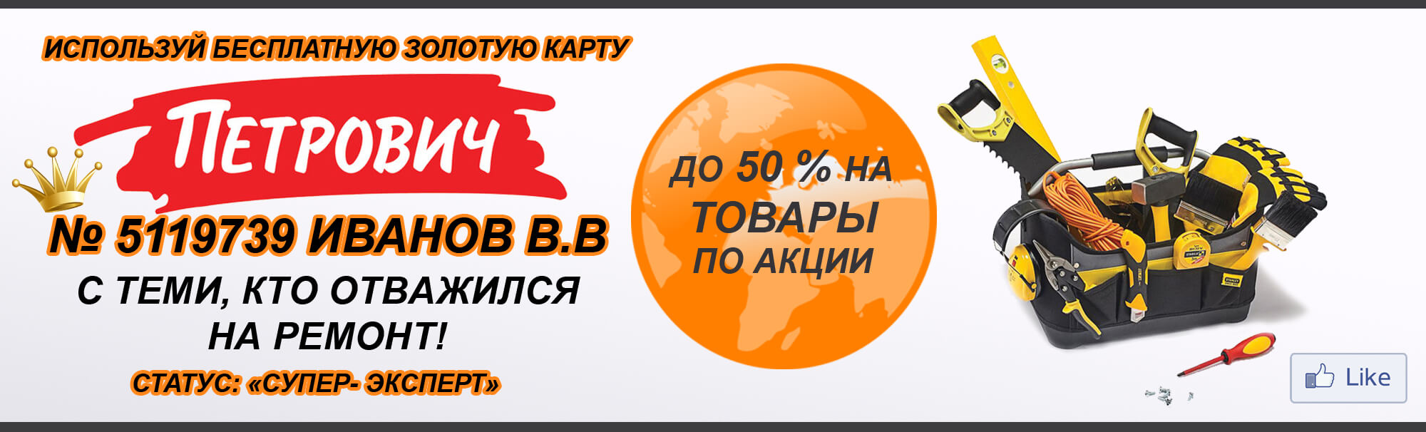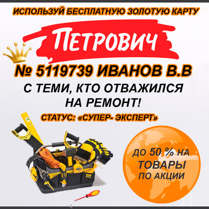 Пользуйтесь скидочной Золотой картой Петрович : 5119739